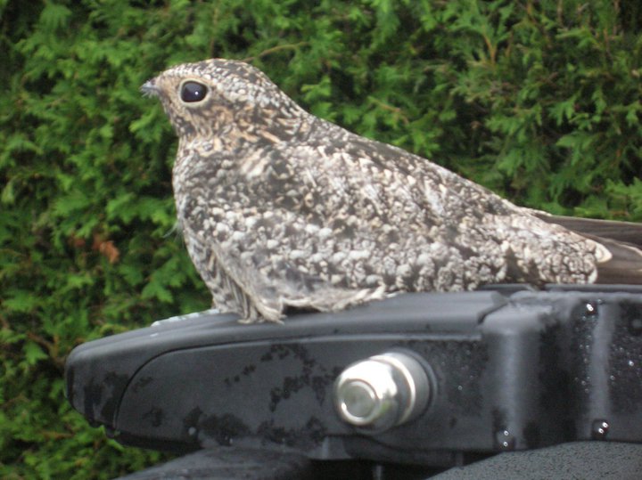 cette oiseau était posé sur le toit de la voiture d'un de mes copains a sa grande surprise........